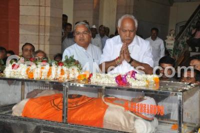 Photo Caption : BS Yeddyurappa paying last respect to Dr MM Kalburgi, who was shot dead yesterday at his residence in Dharwad, the last rights were done in full honors, in Bengaluru on Monday 31st August 2015