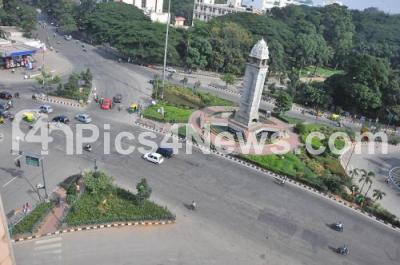 Photo Caption : Aerial shot of the busy corporation circle which wore a desserted look, following 10 central trade unions called Nationwide strike to protest against the labour reforms proposed by the Central government, in Bengaluru on Wednesday 2nd September 2015