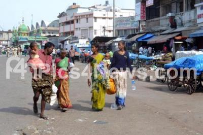 Photo Caption : Commuters walking to reach their destination at KR Market, following 10 central trade unions called Nationwide strike to protest against the labour reforms proposed by the Central government, in Bengaluru on Wednesday 2nd September 2015