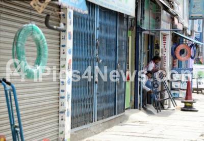Photo Caption : Shops closed at SP Road, following 10 central trade unions called Nationwide strike to protest against the labour reforms proposed by the Central government, in Bengaluru on Wednesday 2nd September 2015
