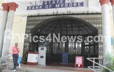 Photo Caption : State Bank of Mysore being closed, following 10 central trade unions called Nationwide strike to protest against the labour reforms proposed by the Central government, in Bengaluru on Wednesday 2nd September 2015
