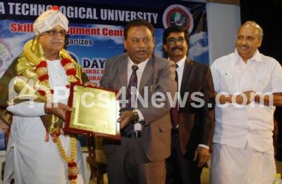 Photo Caption : Raghunandan Sharma, Advisor Loksabha, Government of India being felicitated by Prof H Maheshappa, Vice Chancellor, VTU Belagavi, BS Balachandran, Chairman Bharat Sevak Samaj, Planning Commission, Government of India and others during the 2 day conference on “Skill Development, Rural Entrepreneurship and Technology†at Visvesvaraya Technological University, Skill Development Centre, Regional Office at Nagarabhavi, in Bengaluru on Thursday 3rd September 2015