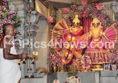 Photo Caption : Priest performing special pooja at the ISKON temple on the Krishna Janmashtami festival, in Bengaluru on Saturday 5th September 2015
