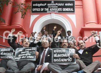 Photo Caption : Members of Bengaluru Advocates Association protesting for Mahadayi Kalasa Banduri project at Advocates General Office, in Bengaluru on Wednesday 9th September 2015