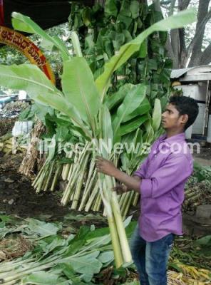 Photo Caption : People seen purchasing banana leaves on the eve of Lord Gowri Ganesha Festivals at KR Market, in Bengaluru on Tuesday 15th September 2015