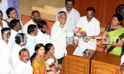 Photo Caption : Newly elected BBMP Council chairmans with Mayor Manjunath Reddy and Deputy Mayor Hemalatha at BBMP Council, in Bengaluru on Wednesday 16th September 2015