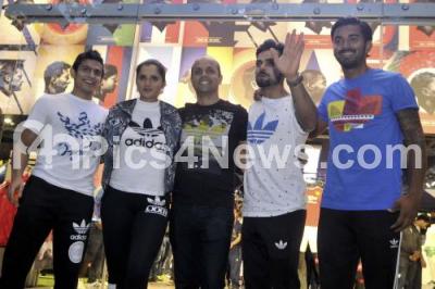 Event Description : Indian Cricket team Captain Virat Kohli, Batsman KL Rahul, Tennis ace Sania Mirza and Squash champion Saourav Goshal during the Promotional event of ADIDAS at Indiranagar, in Bangalore on Saturday 19th September 2015