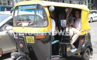 Photo Caption : An overloaded auto rickshaw with the passenger during their travel at KR Circle, in Bengaluru on Tuesday 22nd September 2015