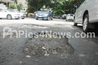 Photo Caption : Bad state of roads causing problems to the people at Crescent Road, in Bengaluru on Wednesday 23rd September 2015