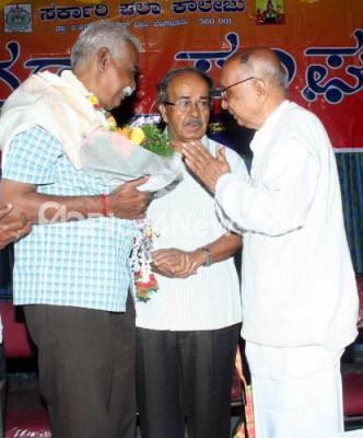 Event Description : Nadoja Dr.M Chidanandamurthy with Prof G Ashwat Narayana and Pundalika Halambi, President , Kannada Sahitya Parishat at the Centenary celebration of Kannada Sahitya Parishat at Government arts College, in Bengaluru on Thursday 24th September 2015