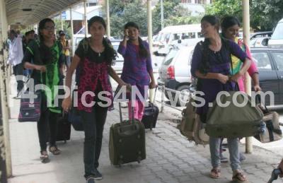 Photo Caption : People walks with their luggage at Majestic Bus Stand, following various Kannada organisations called Karnataka Bund for Kalasa Banduri water projects issue, in Bengaluru on Saturday 26th September 2015