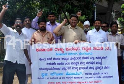 Event Description : Members of Karnataka state Men Security association protesting against the Union Minister Menaka Gandhi for her Comments at Anand Rao Circle, in Bengaluru on Sunday 27th September 2015