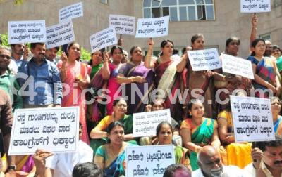 BJP BBMP Councilors protesting in front of BBMP office against Congress Government, in Bengaluru on Monday 28th September 2015