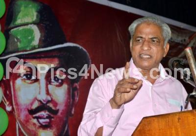 Event Description : Prof KS Bhagavan addressing during seminar on Bhagat Singh Kanasina Bharata (Bhagat Singh Dream India) at Senate Hall, in Bengaluru on Monday 28th September 2015