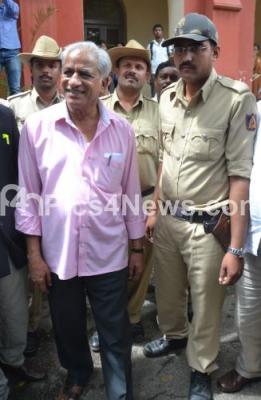 Photo Caption : Prof KS Bhagavan seen arriving with adequate security after getting life threats, to a the seminar on Bhagat Singh Dream India, at Senate Hall, in Bengaluru on Monday 28th September 2015