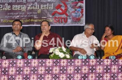 Photo Caption : Justice Santhosh Hegde seen with Gopal Gowda, Gowramma and others at the 2nd District Conference on Domestic Workers at Shikshakara Sadan, in Bengaluru on Wednesday 30th September 2015