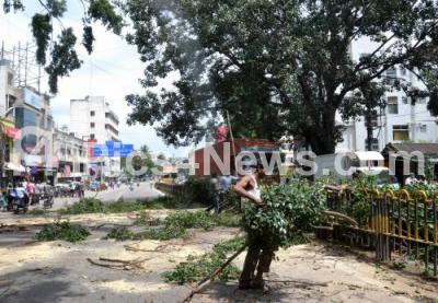 Photo Caption : Old uprooted tree being cleared to make way for the traffic to move on smoothly at Mission road, in Bengaluru on Saturday 3rd October 2015