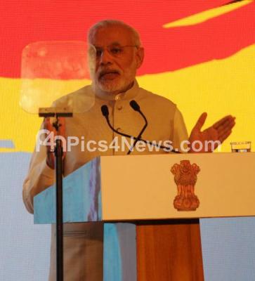 Photo Caption : Narendra Modi, Prime Minister of India addressing the NASSCOM Indo German Summit 2015 event at Leela Palace Hotel, in Bengaluru on Tuesday 6th October 2015