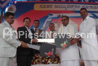 Event Description : CM Siddaramaiah with Health Minister UT Khader, Minister Ramalinga Reddy, Sharan Prakash Patil, Medical Education Minister and others flagging off the 150 new 108 Arogya Kavacha Ambulances at Vidhan Soudha, in Bengaluru on Wednesday 7th October 2015