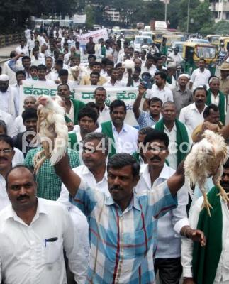 Members of Karnataka state Poultry Farmers association participated in protest rally from Bengaluru City Railway Station to Freedom Park, in Bengaluru on Thursday 8th October 2015