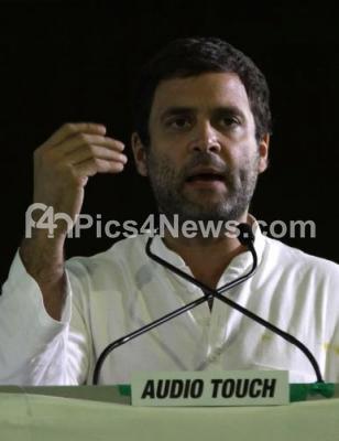 Photo Caption : Rahul Gandhi, AICC Vice President addressing during the Gram Swaraj Samavesha program at Palace Grounds, in Bengaluru on Friday 9th October 2015