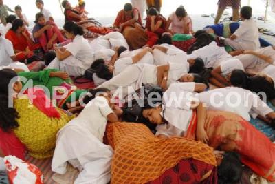 Photo Caption : KIMS hospital nurses staging a protest at KIMS hospital to full fill their various demands, in Bengaluru on Thursday 15th October 2015
