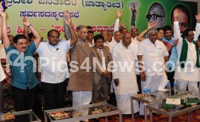 Event Description : JDS Supremo HD Devegowda with HD Kumarswamy, Zameer Ahemd Khan and others inaugurated the JDS convention meet for the upcoming Zilla and Taluk Panchayat elections to be held in December, the meeting was held at Palace Grounds, in Bengaluru on Thursday 15th October 2015