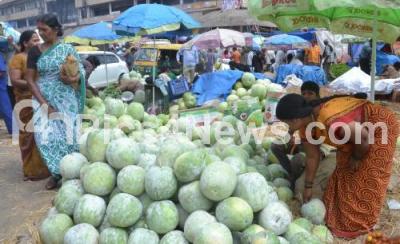 Photo Caption : People buying pumpkin for the Ayudha Pooja and Vijaya Dashami festival at market, in Bengaluru on Tuesday 20th October 2015