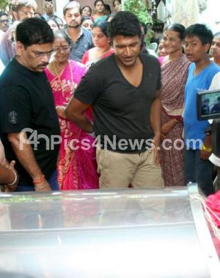 Photo Caption : Actor Puneet Rajkumar paid his respect during the last rights of KSL Swamy, Film Director and Producer who passed away today at his residence, in Bengaluru on Tuesday 20th October 2015
