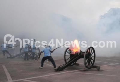 Photo Caption : Cannon rehearsal for the Dasara Festival in Mysuru City on Tuesday 20th October 2015