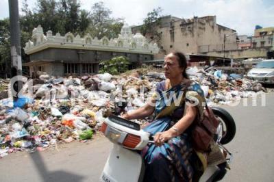 Photo Caption : Garbage piled up near a temple at Sampangi Road, in Bengaluru on Wednesday 21st October 2015