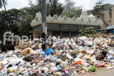 Photo Caption : Garbage piled up near a temple at Sampangi Road, in Bengaluru on Wednesday 21st October 2015