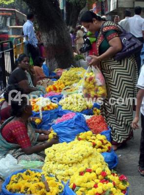 Event Description : People shopping fruits and flowers on the eve of Ayudha Pooja at Malleshwaram, in Bengaluru on Wednesday 21st October 2015