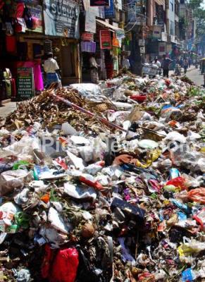 Photo Caption : Festival garbage being dumped on road side at Avenue Road, in Bengaluru on Saturday 24th September 2015