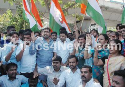 Event Description : Members of Indian Youth Congress led by state president Rizwan Arshad, holding a protest demonstration against Union Minister V K Singh for his intemperate remarks against Daliths at Gandhi Statue, in Bengaluru on Saturday 24th September 2015