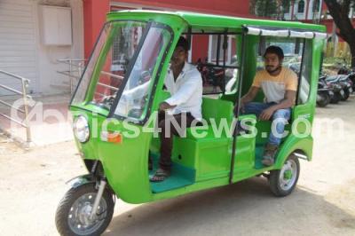 Photo Caption : Volunteers seen displaying the Goenka Electric Motor Vehicles during a press conference at Press Club, in Bengaluru on Wednesday 28th October 2015