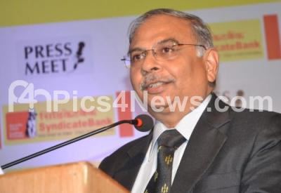 Photo Caption : Arun Shrivastava, Managing Director and Chief Executive Officer of Syndicate Bank seen addressing Syndicate Bank financial results press conference at Hotel Lalit Ashok, in Bengaluru on Wednesday 28th October 2015
