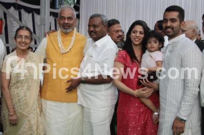 Photo Caption : A Manju, Arakulgud MLA and family jubilant after being sworn in as minister during the swearing in ceremony at Rajbhavan, in Bengaluru on Thursday 29th October 2015