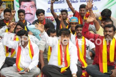 Photo Caption : Karnataka Drivers Association staged a protest for Kalasa Banduri Project at Gandhi Statue, Anand Rao Circle, in Bengaluru on Saturday 31st October 2015