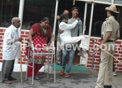 Photo Caption : Physically challenged people during CM Janata darshan at Home office Krishna, in Bengaluru on Tuesday 3rd November 2015