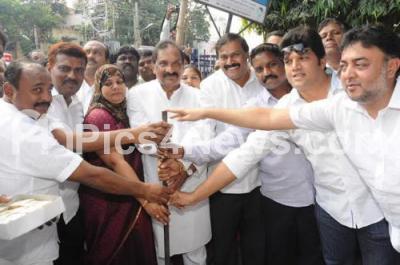 Event Description : Bangalore City Development Minister KJ George with Akhanda Srinivasmurthy, MLA and BBMP Corporators AR Zakir, Nusheer, Ellumalai, Zameer and others performing Guddli pooja to start Development works in Tannery Road,Nagavara Road and in Pulikeshnagar Assembly constituency, in Bengaluru on Wednesday 4th November 2015