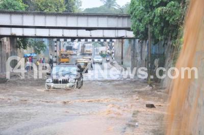 Event Description : Cars submerged in rain water and try to pass through the Kino Theatre under bridge with difficulty due to the recent rainfalls, in Bengaluru on Wednesday 4th November 2015