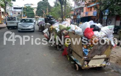Photo Caption : Heaps of garbage carts parked gone unnoticed to the authorities in Vasanthnagar, in Bengaluru on Thursday 5th November 2015