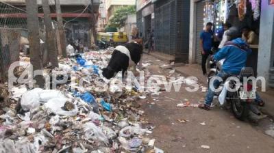 Photo Caption : Garbage being dumped in front of the shops at Chikpet, in Bengaluru on Saturday 7th November 2015