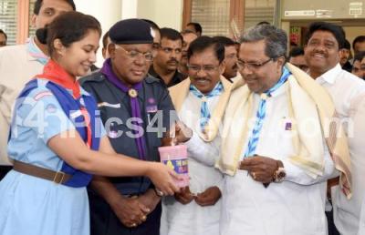 Photo Caption : Chief Minister Siddaramaiah released stamps to commemorate the Foundation Day of the Bharat Scouts and Guides, also seen are Home Minister Dr G Parameshwar and PGR Sindhiya, State Chief Commissioner for Bharat Scouts and Guides and others, in Bengaluru on Saturday 7th November 2015