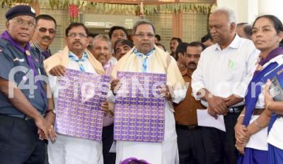Photo Caption : Chief Minister Siddaramaiah released stamps to commemorate the Foundation Day of the Bharat Scouts and Guides, also seen are Home Minister Dr G Parameshwar and PGR Sindhiya, State Chief Commissioner for Bharat Scouts and Guides and others, in Bengaluru on Saturday 7th November 2015