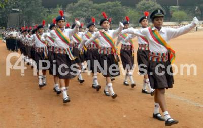 Photo Caption : Children partake in march past during Raising day, organized by Bangalore City Police Traffic warden at CAR Parade grounds, in Bengaluru on Sunday 15th November 2015