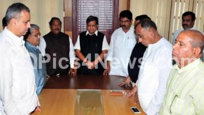 Event Description : BJP MLAs paying tribute to MLA Gurupadappa Nagamarapalli, who passed away today at Vikram Hospital, the condolence program was held at Opposition party office, Vidhana Soudha, in Bengaluru on Tuesday 17th November 2015
