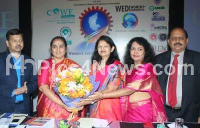 Photo Caption : Rajni Mishra, Chief General Manager of State Bank of India being greeted by K Ratna Prabha, IAS, Additional Chief Secretary Government of Karnataka and others during the Women’s Entrepreneurship Day program at Hotel Chancery Pavilion, organised by Government of Karnataka, in Bengaluru on Monday 23rd November 2015