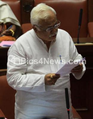Photo Caption : Minister RV Deshpande seen addressing during the Council Session at Vidhan Soudha, in Bengaluru on Friday 27th November 2015